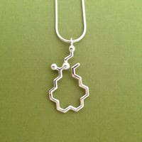 This pendant design follows the anadamide ring, where the long carbon tail wraps around your finger. In the necklace version, the tail forms a graceful curve, reminiscent of a rain drop.