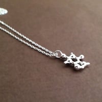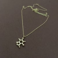 This petite caffeine molecule necklace is perfect for people who like their jewelry subtle, elegant, and imbued with meaning. It's also perfect for layering with other necklaces.