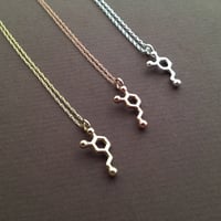 This necklace is a pretty, petite tribute to this important and wonderful molecule. It is available in your choice of metals.